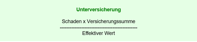 Ist die Versicherungssumme kleiner als der Ersatzwert, wird der Schaden nur in dem Verhältnis ersetzt, in welchem die Summe zum Ersatzwert steht (VVG 69)